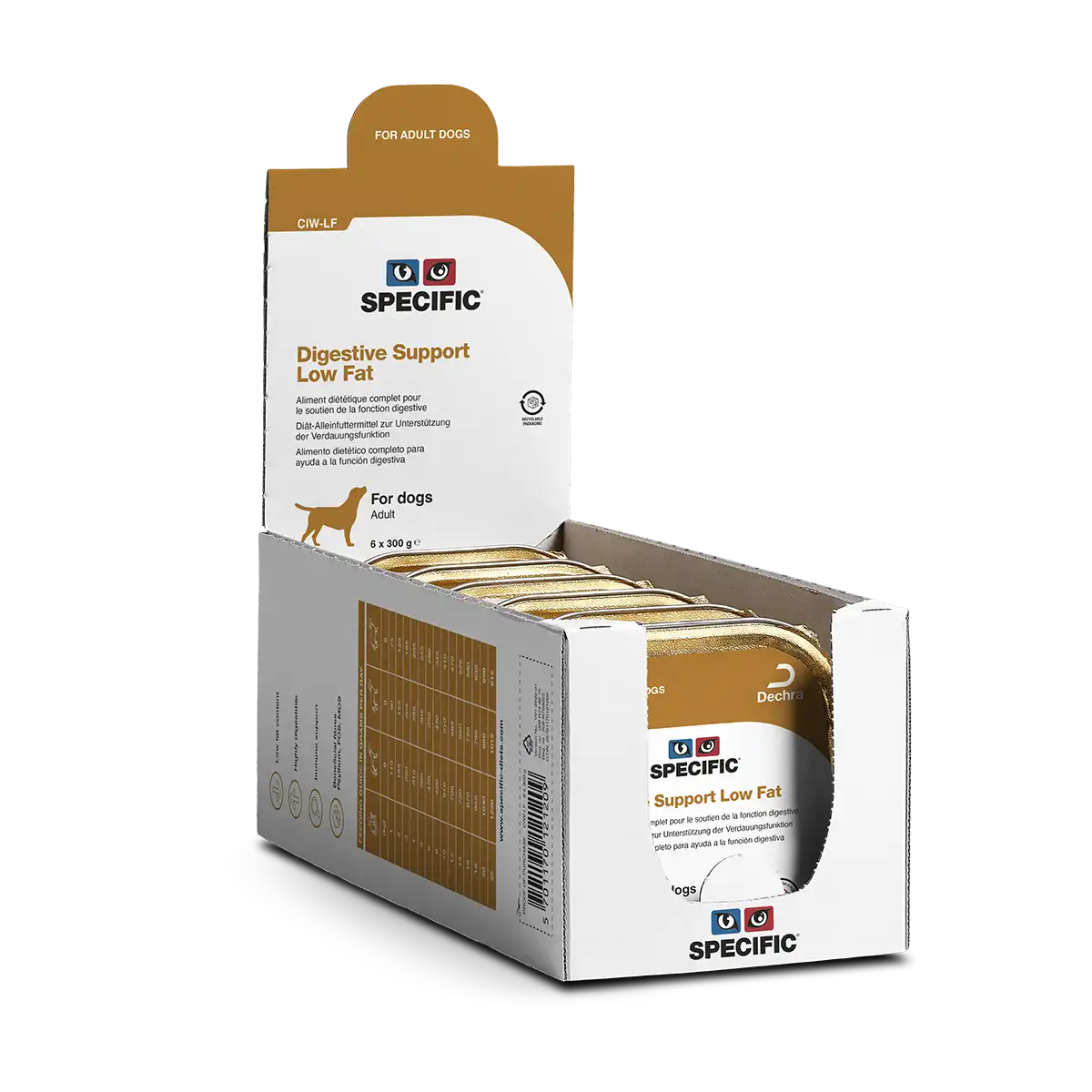 SPECIFIC™ Digestive Support Low Fat CIW-LF to pełnoporcjowa i w pełni zbilansowana karma mokra dla psów dorosłych. Może być stosowana jako podstawa diety bądź smaczny dodatek. Będzie to także idealne wyjście, gdy pies nie pije wystarczającej ilości wody.