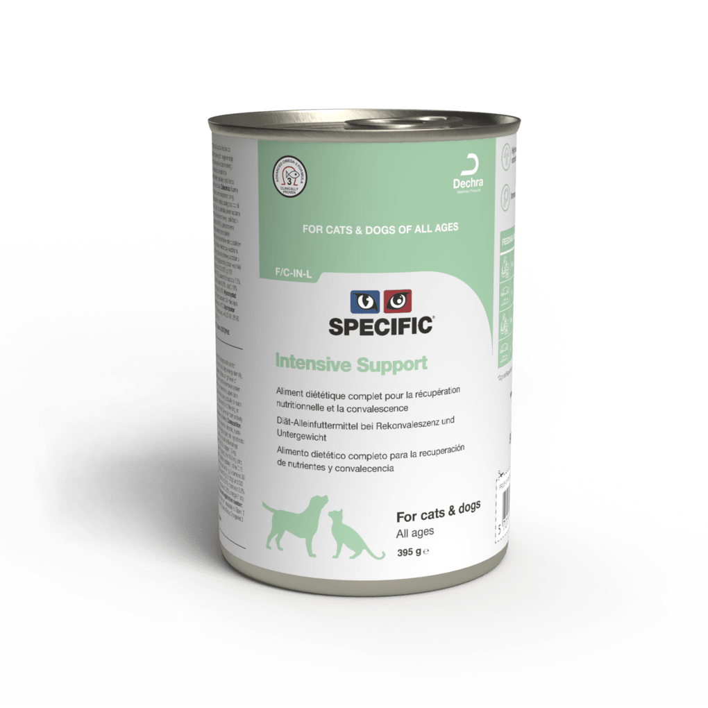 SPECIFIC™ Intensive Support F/C-IN-L to pełnoporcjowa i w pełni zbilansowana karma płynna dla psów i kotów w każdym wieku, w tym szczeniąt i kociąt.