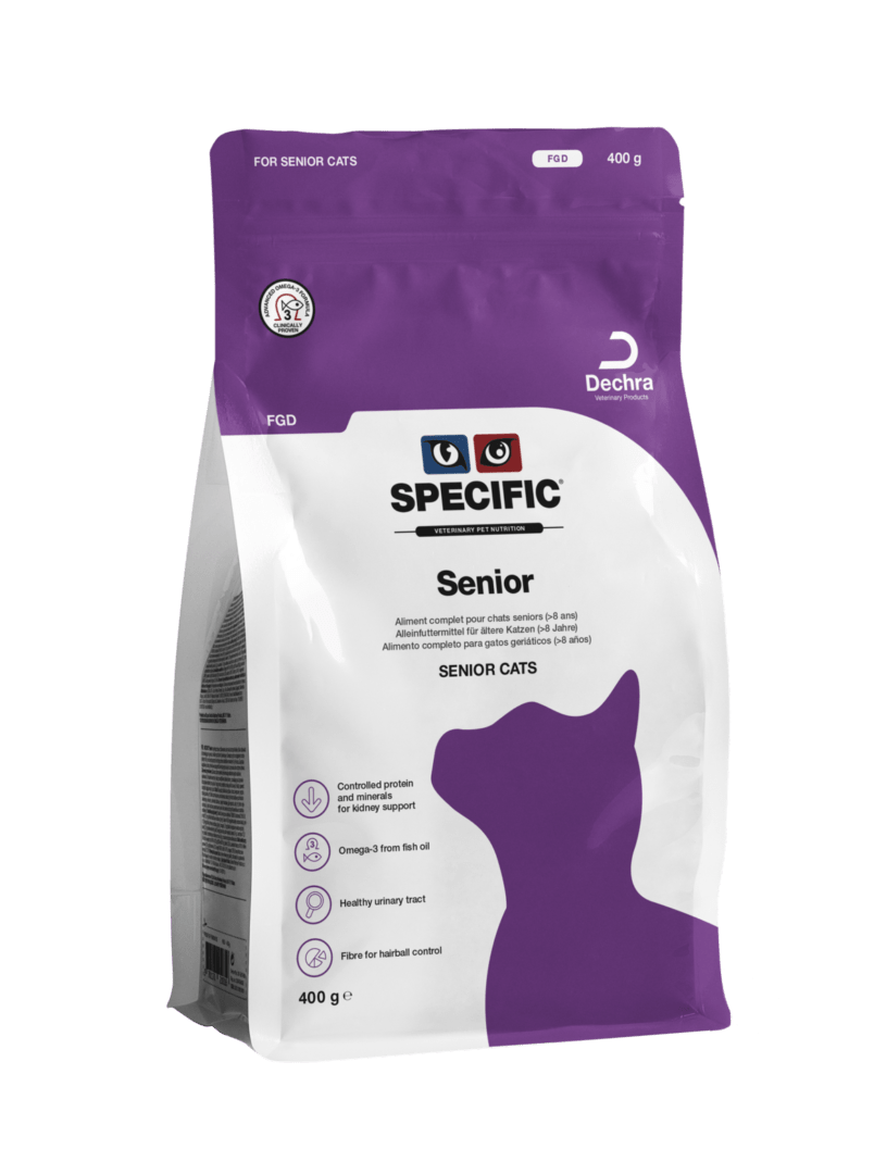 SPECIFIC™ Senior FGD to pełnoporcjowa i w pełni zbilansowana karma sucha dla kotów starszych, powyżej 8 lat.